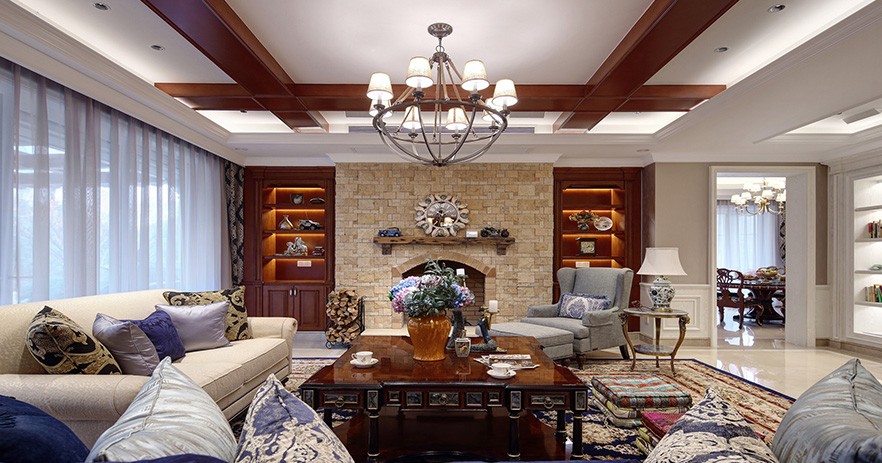 美式風格的裝修與汀香別墅所建的環境相得益彰。在寧靜之中盡顯格調與奢華。室內的裝修采用純正美式的相關元素,營造整個空間中溫馨的氛圍...